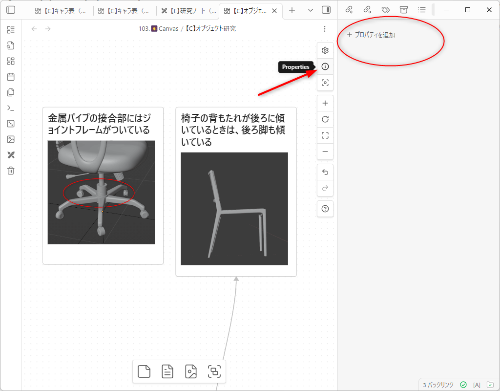 また、いったんプロパティに関係性を記述しておけば、すべてのcanvas上で関係性が矢印で図示されるという効果も期待できます。
