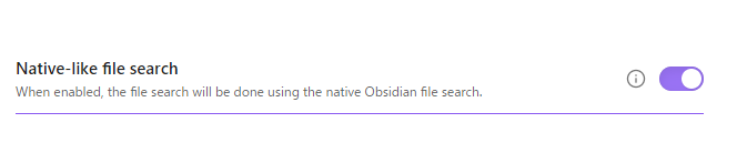 また、デフォルトでOnになっているはずですが、下記のように、「Native-like file search」がONにしてください。