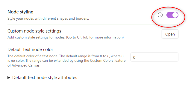 「Node styling」をONにしてください。また、CSSの知識があれば、自分で新しいノードのスタイルを追加することもできます。